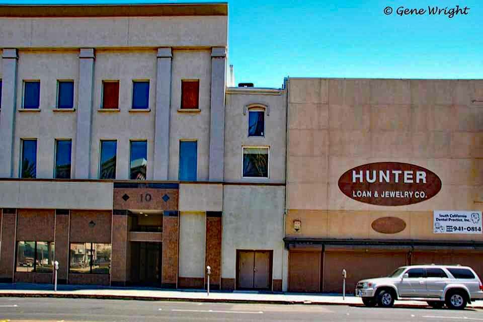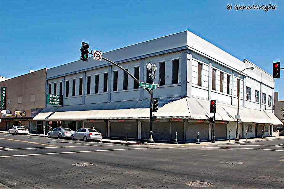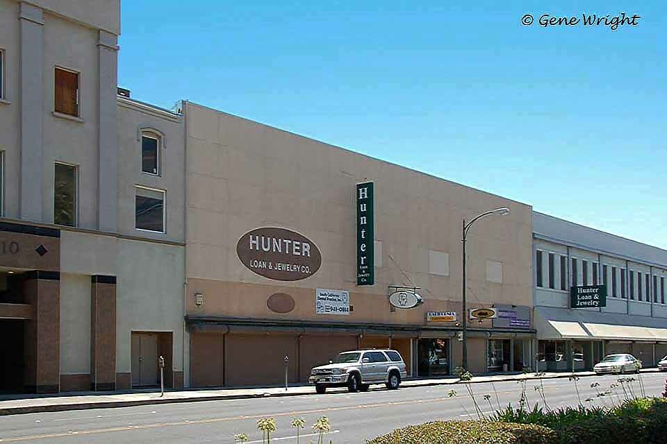 38-48 S. California Street - Peffer Building - Stockton City Directories show no listing at this address until 1930, when it was occupied by International Trucks. By 1935, B. L Remington Garage (who also occupied the building next door at 20 S. Aurora is listed. By 1940, Devine & Willard Auto Trucks were at this address. The building changed hands by 1945, when the Kraft Cheese Company had a facility here, and again by 1950, when the Republic Supply Company of California occupied the building.0-50 South California Street - Hunter Loan & Jewelry - This building appears on the 1895, 1917 and 1950 Sanborn maps. The 1895 map noted the presence of a paint shop, restaurant, drug store, and lodgings on the second floor. The 1917 map recorded a bicycle shop, and candy factory, among other businesses. The Stockton City Directory of 19211ists 38 S. California as the Golden West Rooms, and names five tenants. By 1930, the City Directory listed it as the Peffer's Music Studio Building, with a wide variety of tenants, including the Elmer School of Music, Peffer's Music Company, Radio KDGM, Monte's Bakery & Stockton Tamale Cafe, Stockton Coney Island, Stockton Seed Company, and Stockton Drug Company. By 1935, only the Coney Island and Peffer Music Company remained. In 1940, KDGM Radio, Peffer Music and a Post Office were listed. By 1945 the building was listed as vacant. In 1950, it again housed a variety of businesses, including a shoe store, women's clothier, the Stork Shop, two beauty shops, a confectioner's and a paint store. The shoe store, Stork Shop, and Stockton School of Beauty remained in the building through at least 1960. A second shoe store, a men's wear shop, and Lee Stores Vacuum Cleaners opened in the 1950s. There is currently a large pawn shop on the ground floor.