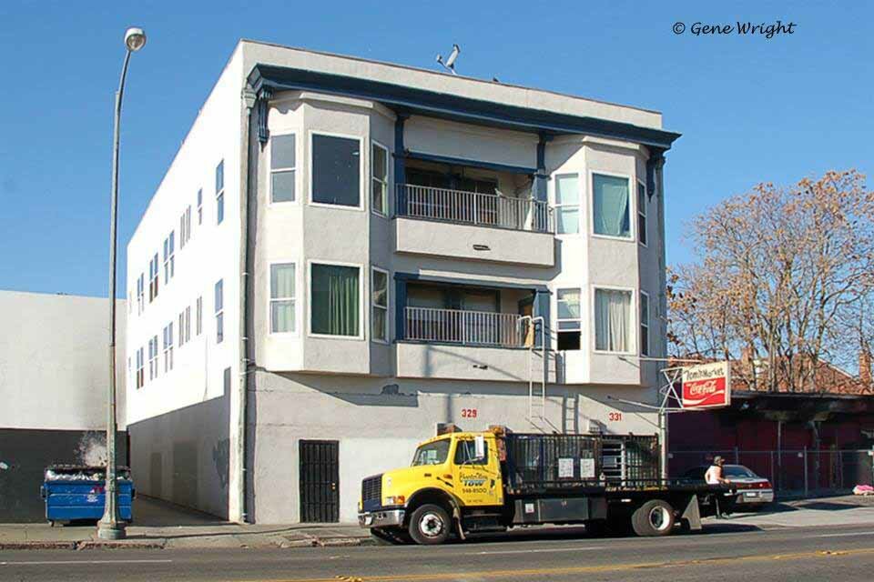 327-331 N. California St. - Pezzi Apartments - By 1915, Stockton City Directories listed six tenants at 329 N. California, and a P. W. Mosher at 327. By 1921, eight tenants were listed at 329, ·and John Becker had moved into 327. By 1925, there were again six tenants at 329, and no other adjacent buildings were noted. By 1930, only five tenants were listed at 329, with Mother Lee's Pure foods on the ground floor 327 and the California Fruit Market at 331. Members of the Pezzi family had been in residence in this building since it was first listed, and by 1940, the building is listed as the Pezzi Apartments. By 1945, the ground floor businesses had changed to a restaurant owned by C. M. Harelson and J. T. Warren's grocery store. By 1950, the businesses had changed to the Cal Market Grocery and the M & L Meat Market.