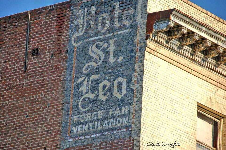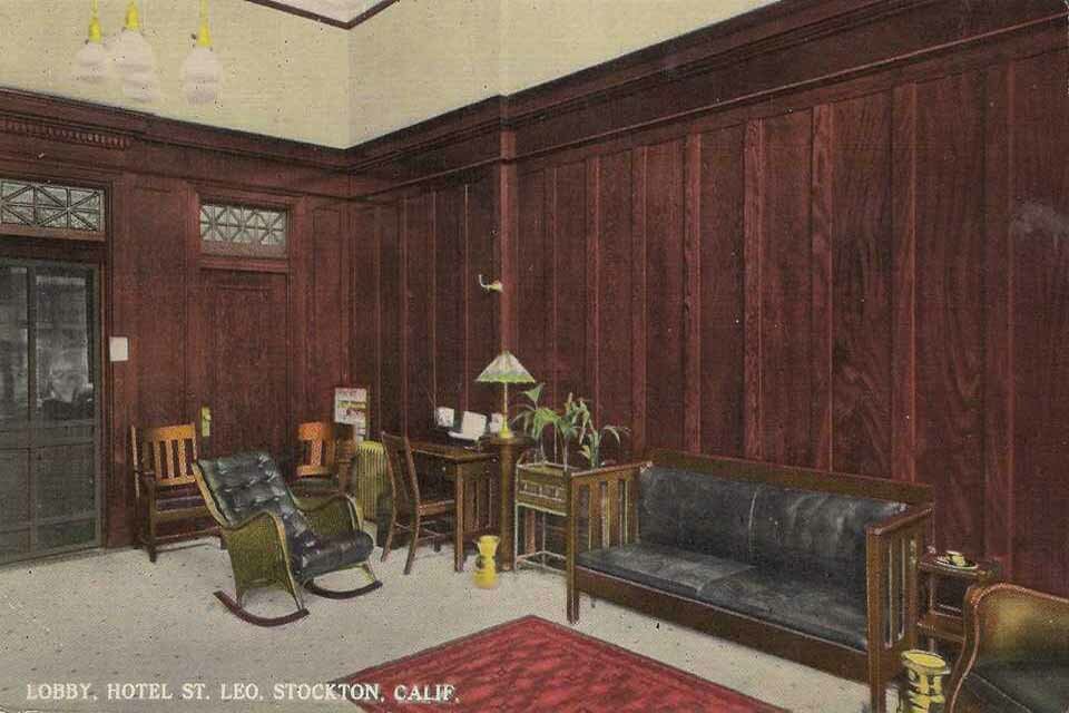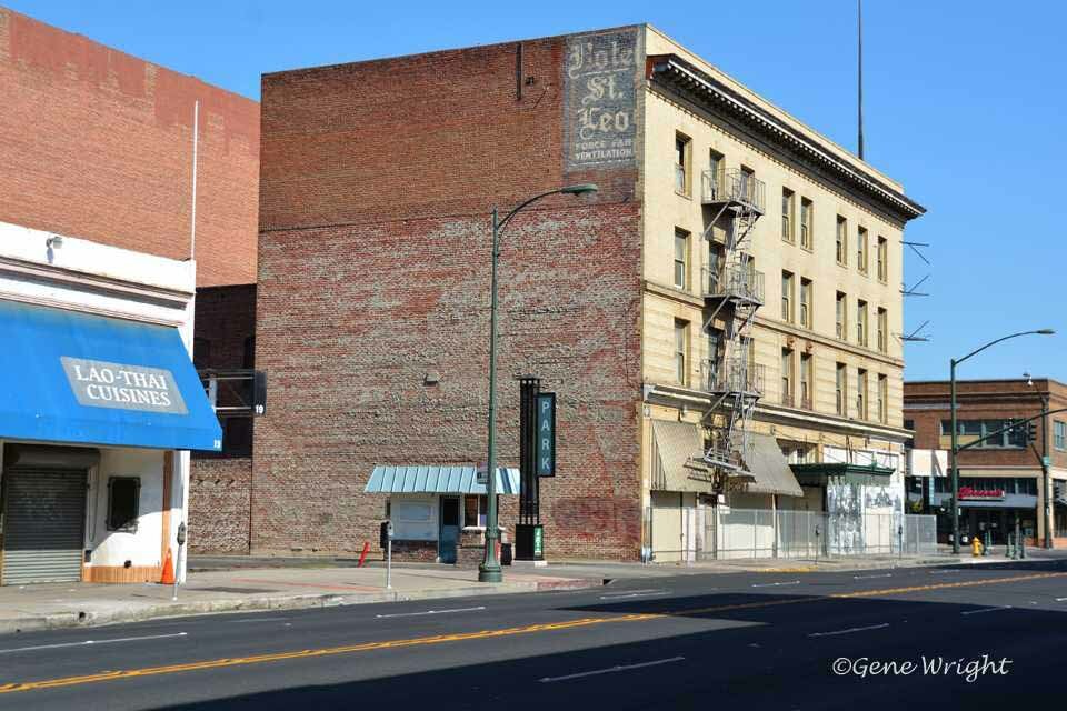 33-45 N. California Street - St. Leo Hotel - The Hotel St. Leo is one of several early Twentieth Century hotels constructed in Stockton. The St. Leo was built in 1913 and once hosted travelling salesmen and the out-of-town elite. Reading rooms at the St. Leo were upholstered in leather, and rooms there cost $1. The building possesses Renaissance Revival details. The exterior of the St. Leo Hotel retains much of its architectural integrity. Corner of Weber - Bottom Right photo, St. Leo Hotel - looking N.E. with Stockton Engineering College and Ghiardelli sign. Bottom Photo, Matthew Craig. Read More about the [About StLeo]