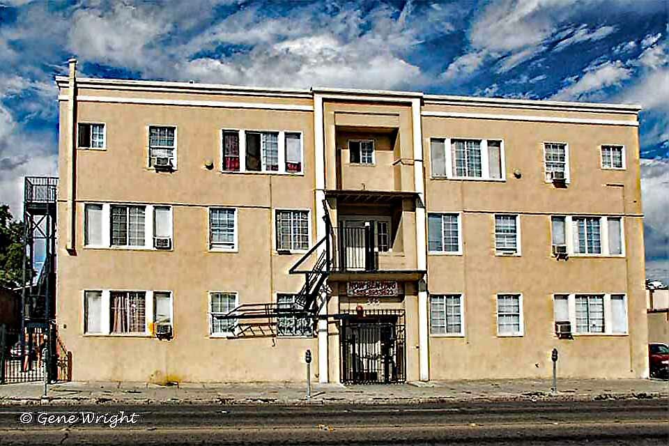 247 S. California - Claremont Apartments - 1920s - Demolished for Crosstown Freeway - Joe's Mexico City Cafe - 1967 (C.D. Sotelo)