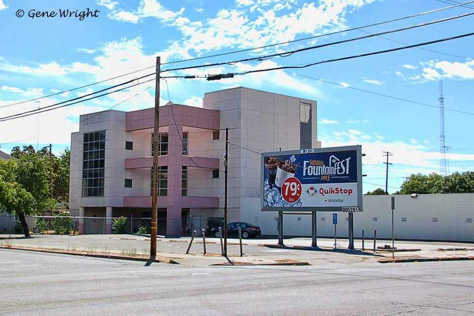 California & Channel - SE corner Former Sunny's / Stockton Business College (1891) - 2nd from right photo, Floyd Perry Jr. - 1987 - Right photo, a bank parking lot today.