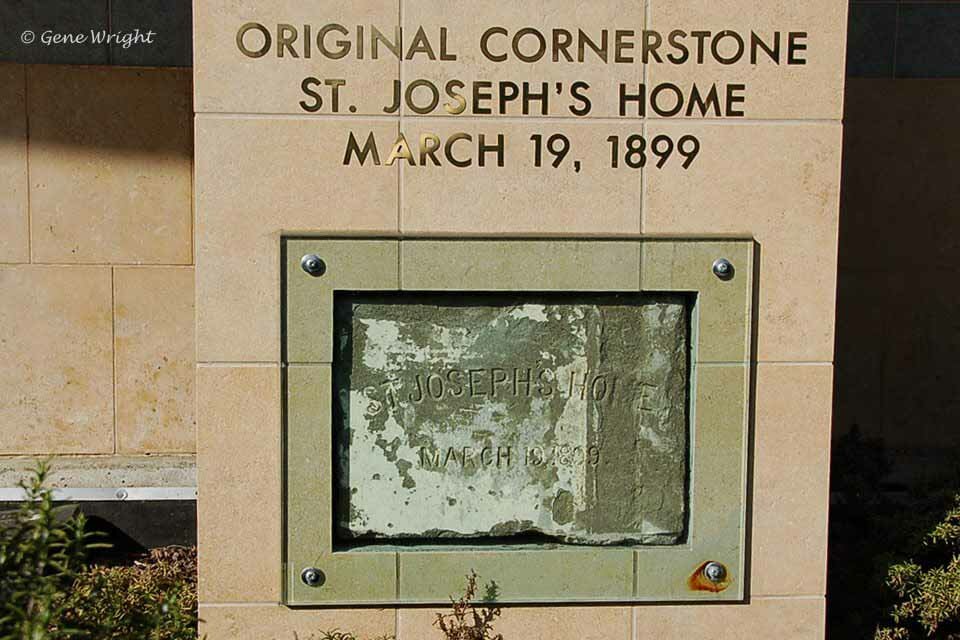Father O'Connor made significant efforts in his lifetime to provide foundations for education and health care in the Stoekton area. He was respected and loved by people of all faiths. "During the smallpox plague, which raged in Stockton during 1881, Fr. O'Connor went from house to house, visiting the afflicted, bringing them the consolations of religion, and speaking kind, encouraging words to the poor sufferers. He thus exposed his life daily."2 In 1875, he made application to the Dominican Sisters of San Rafael to help him establish S1. Agnes Academy Convent and School in Stockton. After establishing St. Agnes, Fr. O'Connor pursued his vision to build a home for men who would be cared for in their last declining years in comfort. On September 19, 1898, Fr. O'Connor's plans for the Home were announced: In July 1884, Fr. O'Connor purchased 9.23-+ acres of ground north of the city limits, facing California Street. Miss Julia Weber, daughter of Stockton founder, Captain Charles Weber, Mrs. Basilio Laogier, and Major J.D. Peters, presented the money for purchase of the property to Fr. O'Connor.s When the town heard of the plans for a home for old men, Dr. Ellis Harbert and a group of local physicians suggested that they constmct a hospital as well as a home. They pointed out the great need of the community for a suitable place to which they could bring their medical and surgical patients for specialized care. Doctors of Stockton pledged support for the project. Fr. O'Connor selected the name for the institution. S1. Joseph's Home, and dedicated the home and hospital annex on St. Joseph's Day, March 19, 1899. The cornerstone The cornerstone was put into place on March 1938 20, 1899, due to inclement weather on March 19.
