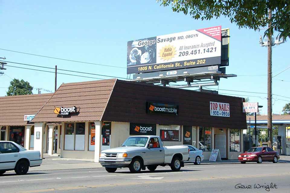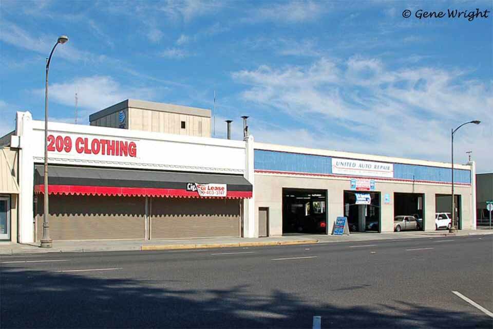 821 N. El Dorado - Avon Products - Farmers Insurance (1976) / Electroway (1957) / San Joaquin Motors (1941)/ Owen Masters Pontiac (1938) /E.M. Stretch Autos (1931)