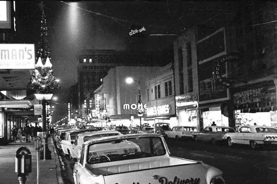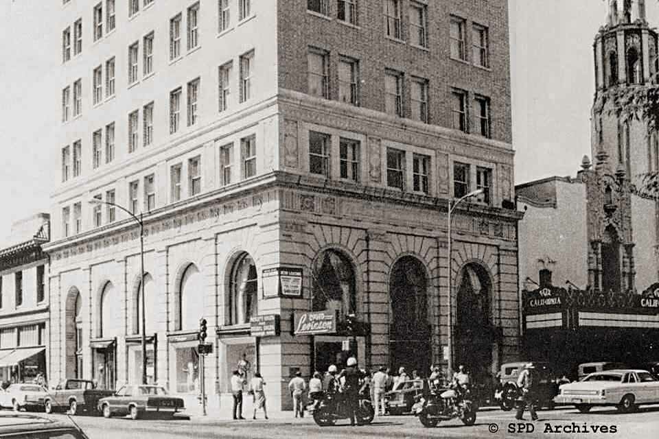 426 E. Main St. - Ritz Theater - The Ritz Theater opened in 1937. The Ritz Theater was still listed in 1955 with 926 seats. - Photos courtesy of Floyd Perry Jr., photo courtesy of Denise Armstrong - Demolished for the American Savings Building. A&W was here from 1976-1987 432 E. Main St. - Pesce Jewelers (1928) / Silver's Jewelers - Demolished 432 1/2 E. Main St. - Orange Juius - (1935) - Demolished 434 E Main & California SW Corner - Dr Layne / Sierra Lunch - 1949 - Moss Stores Women's Clothes, See's Candies - The American Savings building wiped out the entire 400 block on the South side of the street440 E. Main St. - Simon Jewelery / Chandler's Shoes 442 1/2 E. Main St. - See's Candies 444 E. Main St. - Pecks Jewelery 446 E. Main St. - The Nugget Restaurant 448 E. Main St. - Marc's Jeweler's Kress Building - 409 E. Main Street