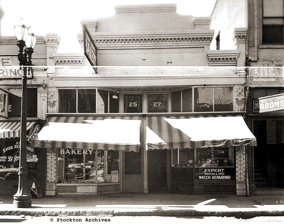 Trail Coffee Roasters - 501 E. Main St Traol Coffee Roasters believe in adventure, good friends and a great cup of coffee. They don’t take any of it for granted. That’s why they celebrate their founder’s trailblazing spirit and recognize the journey that each serving of their ethically sourced coffee has taken – from seed to cup. From a trail high up in Nicaragua’s cloud forest, the inspiration for Trail Coffee was carried down the slopes of Cerro de Jesus and through the communities that they support. Today, they continue to source their own coffee from the farmstead in Nicaragua while also bringing the best beans from around the world to be roasted at their café in Stockton.This building was constructed in 1917 as the Owl Rexal Drug Store. The exterior of the building was painted orange as was typical of the Owl stores. At the time of construction it was thought that a drug store would give new importance to the downtown area. Drug stores of the time typically had a soda fountain in the store. The Owl Drug Store was one of the first chain states to engage in retail business in the Stockton area. The drug store closed in 1959. The building has since been used for small businesses. Just previously it was the Skyy Lounge In 1946, United-Rexall Drug Inc. purchased the Renfro chain in Texas. It also launched the Owl Superstores chain. In 1947, the company held a gala opening for their new headquarters and first store in Los Angeles, California. The new Hollywood Owl was reported in Life Magazine as 'the World's Biggest Drugstore'. In 1958, the Rexall Drug Company was the largest U.S. drug store franchise, with 11,158 stores (for comparison, there are fewer than 12,000 McDonald's restaurants in the U.S. today). Time Magazine noted that 2/3 of its stores were in areas where 1/3 of the population lived. However, this comprised more than 20% of all drug stores in the United States. 509 E. Main St. - Roberts Mexican Food / Mr. Smorgey / Singer Sewing Machine Co.511 E. Main St. - 1928 Maryland Rooms 515 E. Main St. - 1928 Sherman Clay / Dotty Dean 517 E. Main St. - Cassidy's Luggage Shop / Meads Red Cherry Bakers - Ruhl Building523 E. Main St. - Pecklers Shoe Store 525 - Buzz Psychedellic and Smoke Shop / Former Curtain Shop - Ruhl Building 527 - Seymour's Jewelery - Ruhl Building 531 - Eagles Club