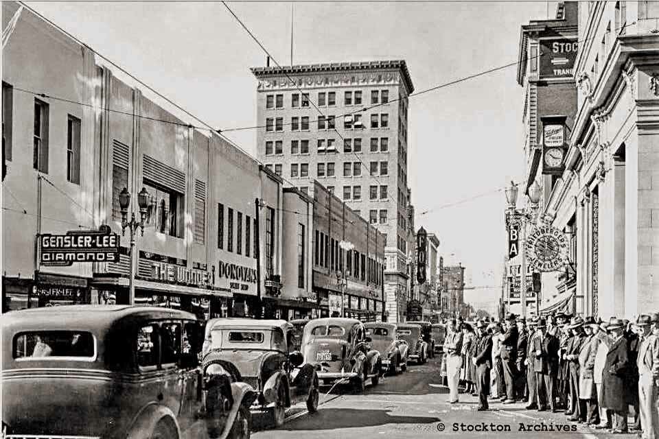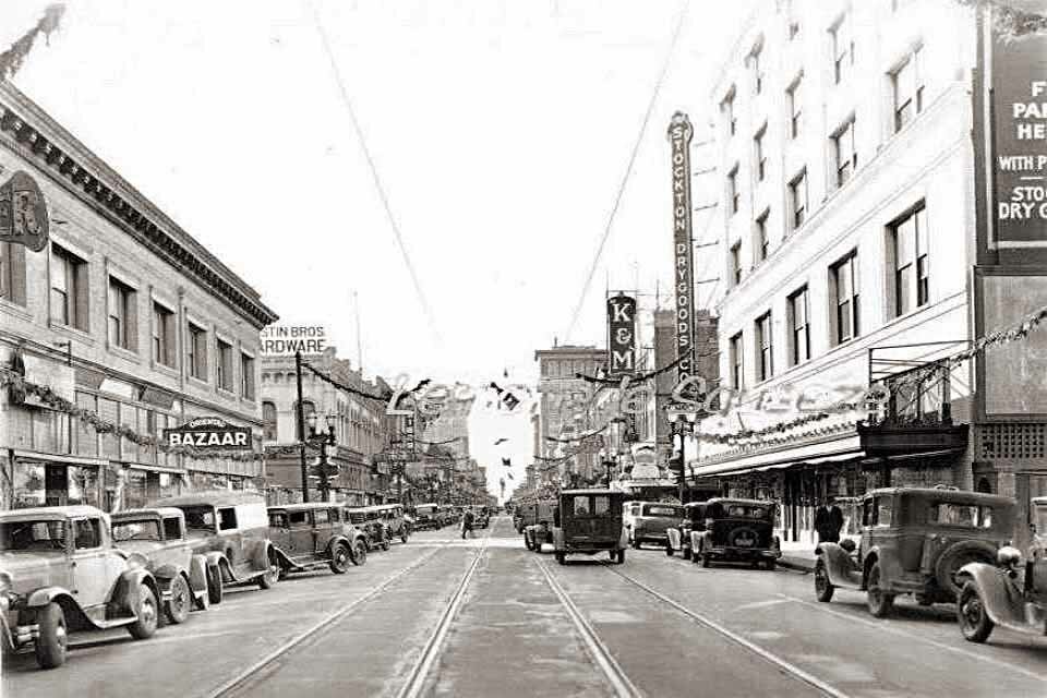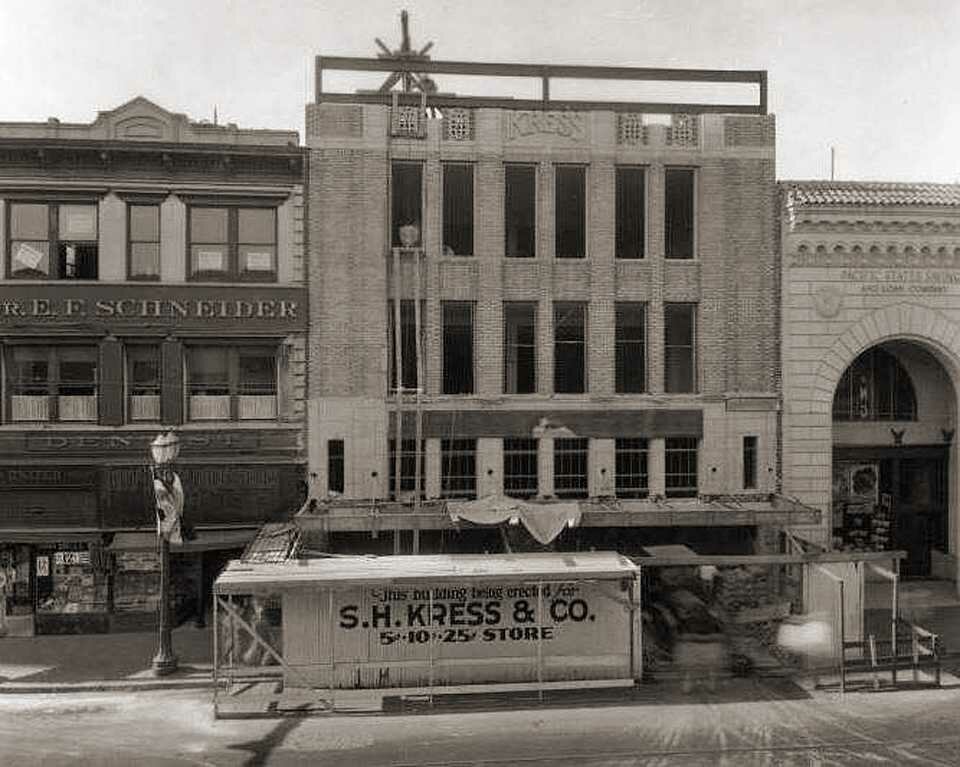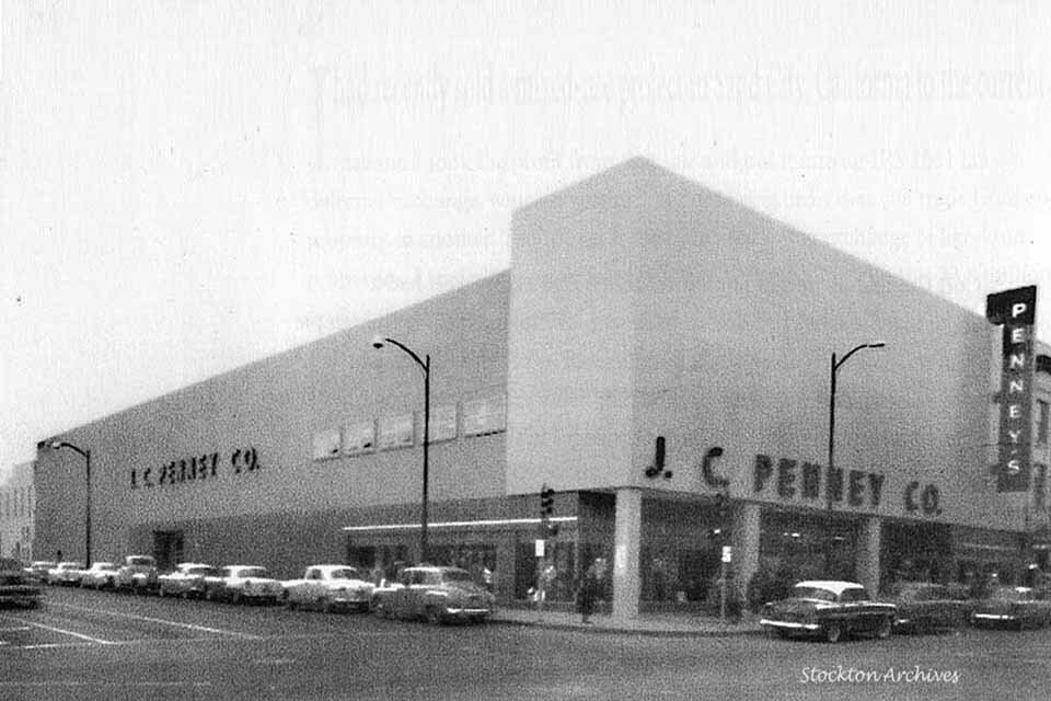 500 E. Main at California - it was home to Stockton Dry Goods in the 20s before they moved to 601 E. Main - Later it was Penny's - See below / Katten & Marengo (1957) - “Constructed in 1882 this building reveals a Classic Revival architecture. The three story building was once the Avon Theater with a seating capacity of 1,200 and reportedly excellent acoustics. The seats were arranged in an amphitheater format with a gallery on the third floor. Businesses were housed on the first floor. In the 1890s, with the opening of other local theaters, the Avon ‘s popularity declined. At one time it was converted to J.C. Penney, then later a Mode O’Day and Katten Marengo Department Stores. Recently renovated with a new façade, the previous ground floor tenant was the San Joaquin County Treasurer/Tax Collector . Built before 1895, it is one of Stockton’s oldest downtown buildings.“ 540 East Main at American - Stockton Dry Goods