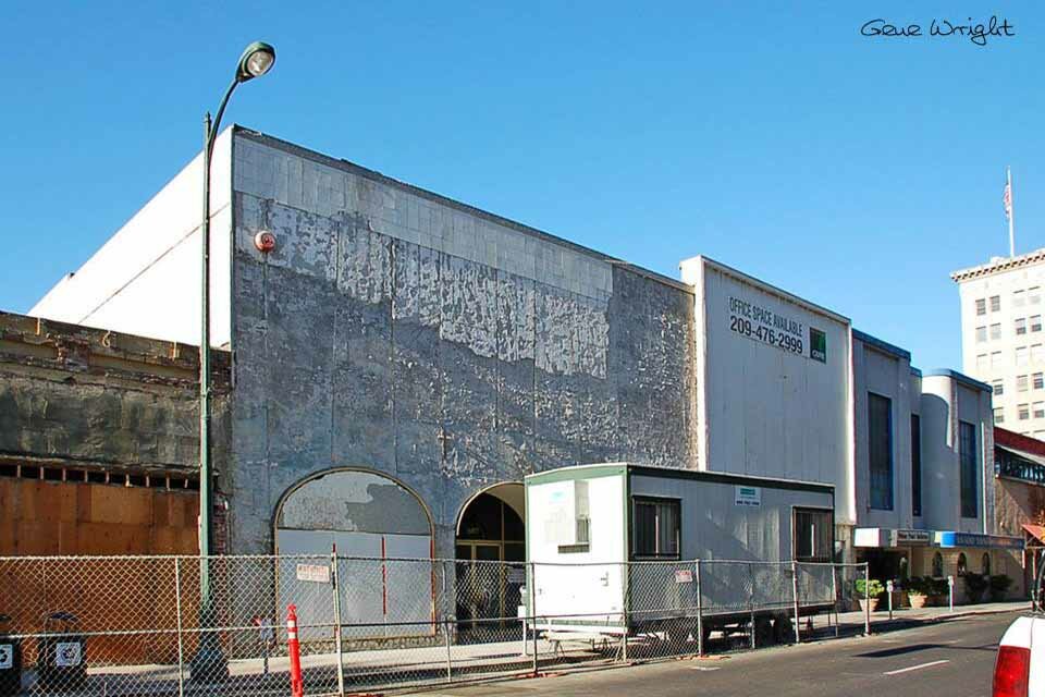 321-323 E. Main St - Former State Theatre - The Yosemite Theatre was opened around 1893. It was remodeled by architects Weeks & Day in 1920 and re-named Loew's State Theatre. Listed in the 1941 & 1943 editions of Film Daily Yearbook as the Fox State Theatre with a seating capacity given as 1,510. In the 1950 & 1952 editions it is the State Theatre with a slightly reduced seating capacity to 1482 seats. Following the closure in 1954 of the Esquire Theatre, the name was transferred to this theatre.- Demolished for a parking garage - Also shown is 301-311 E. Main St. - Stockton Savings & Loan Building, Tom Gleason's Drug Store and339 E. Main - Friedburger Jewlers