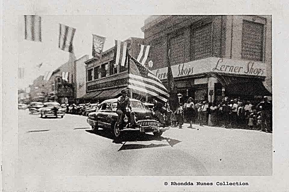 825 E. Main St. - Don Rafa's Taco Shop / Albertos / Former L&M Cafe (66) / Jack's Lunch (43) Appearing on the 1917 and 1950 Sanborn maps, and the 1917 Stockton City Directory lists a business owned by Thomas Richards at this address. By 1930, the Quick Lunch restaurant was located here. The restaurant changed hands frequently. In 1935, City Directories listed it as W. T. Collins' restaurant, and in 1940 as Nadine Sutton's. By 1945, the restaurant was owned by Joshua Kurpiel, and by 1950 by Fred Kim Restaurant (50). It appears that the second floor was residential, but there were no listings for this building other than the restaurants in City Directories831 E. Main - Washburn Realty (1960) / Central Valley Kirby Vacuums (50) 840 E. Main St. - Appearing on the 1917 and 1950 Stockton Sanborn Maps. There is, however, no listing in Stockton City Directories for this building until 1950, when the Bridgo Lodge, described as "amusements," was located on the South Aurora side of the building. Left photo - Floyd Perry Jr. at the start of a fun day.