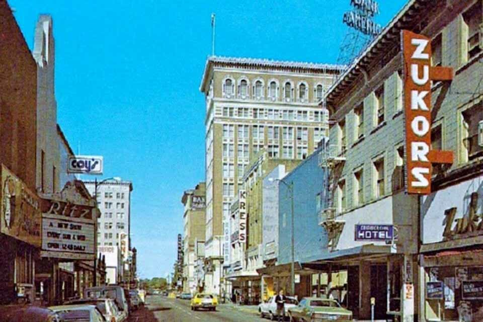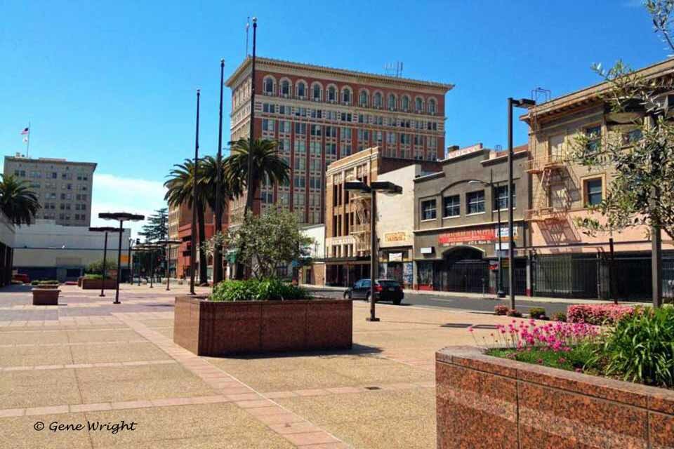 Main Street Mall - Looking west from Main & Hunter towards El Dorado St - First Federal Building on the left