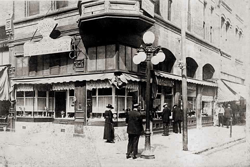 In the 1920s it was known as the Antler Hotel, and remained so until the 1960s. The first floor was used for a variety of businesses, including a clothing store, Reimans camera store, Martins Jewelers, and Sherman's thrift store. Left photo by Roy Perez, Right photo by Mike Reiman528 E. Main - Reimans Camera Shop 530 E. Main St. - Martin's Jewelers 532 E. Main St. - 1928 Antler Hotel 534 E. Main - Federal Outfitting Company - 1935 543 E. Main Street - Hotel Terry