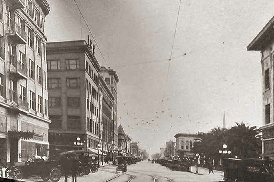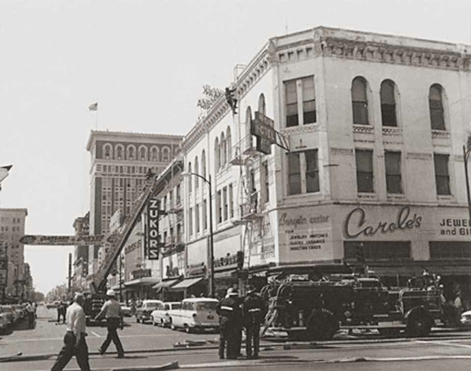 202 E. Main St. Dunlaps Stockton Dry Goods (50) / John Breuner Company (1943)Levy Brothers Department Store. Built in 1921, demolished in 1978 for another government building