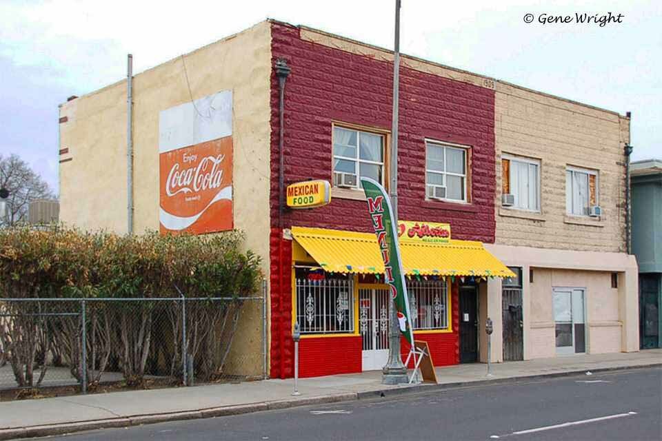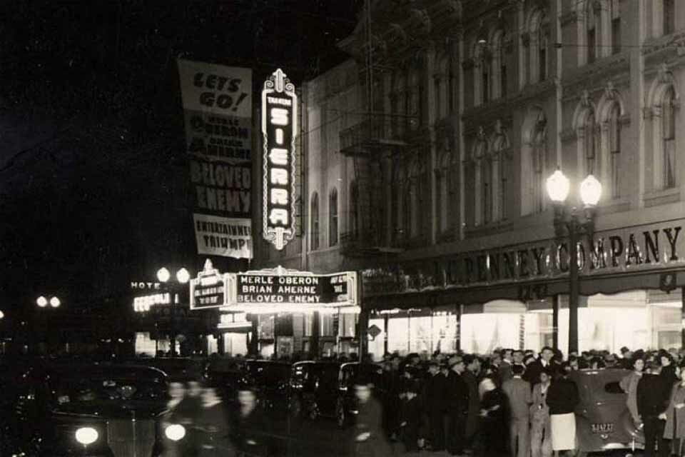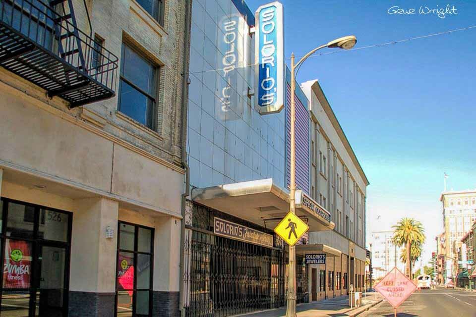 520-522-526 E. Main S. - Next to Penny's - The Former Sierra Theatre was operating prior to 1941, and continued until closing in 1953. It was operated by Blumenfeld Theatres chain which also erected the Esquire - 650 seats. After the Sierra closed its doors, it was remodeled into Ardens (522) (a women's clothing store, and Pecklers Shoes (1928) / then Roe's Shoes). (520), The Sierra Theatre building is still standing today as Solorio's Furniture Store and Solorio's Jewelers.