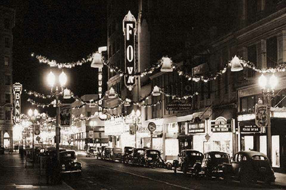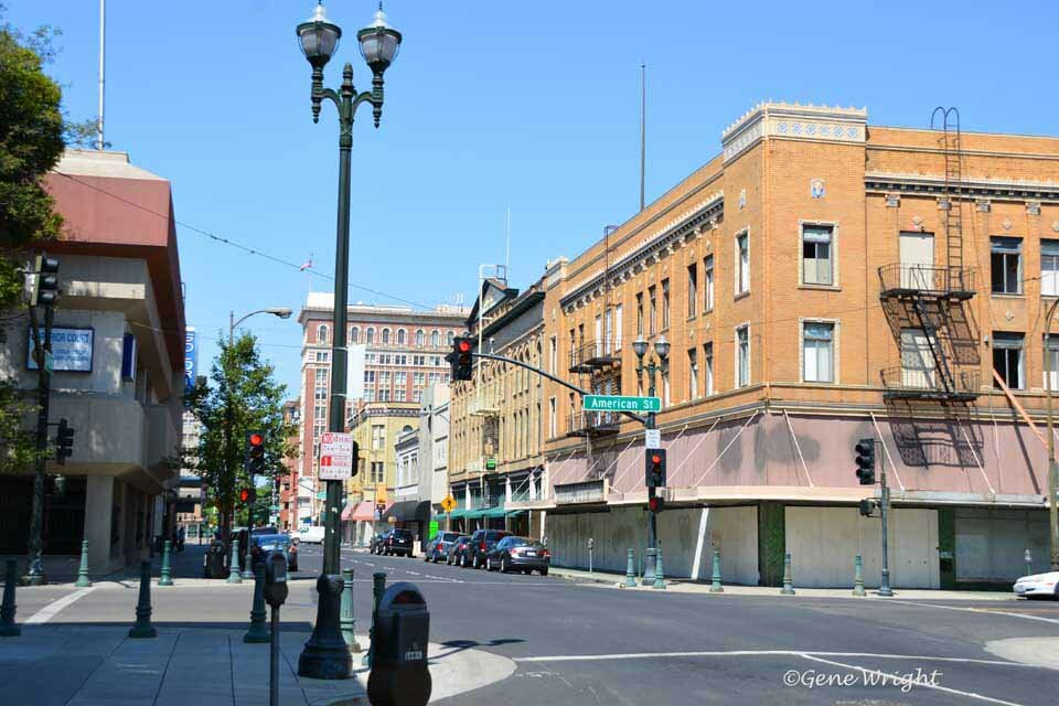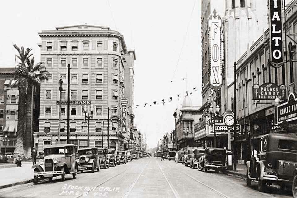 214 E. Main - 1928 - Fox Rialto Theatre with the Fox West Coast Theatre in the background216 E. Main - Emma's Fountain (1976) / Palace Candy Store / Palace Restaurant (50) 218 E. Main - Jeffery Brothers Shoes (1957-1976) 220 E. Main - Eldridge Building - Yost Brothers Clothing Originally at 24 South Sutter - 210-220 East Main Street - The Rialto Theatre dates back to at least 1922 when a Robert-Morton organ was installed. It was renovated in 1949, to the plans of architect William Glenn Balch. The Rialto Theatre was demolished January 1950 to make room for a department store addition and latter the Jury assembly room - Courtesy of Mike Whirlow 225 E. Main - Court House