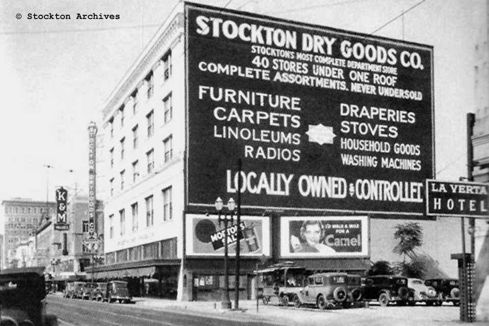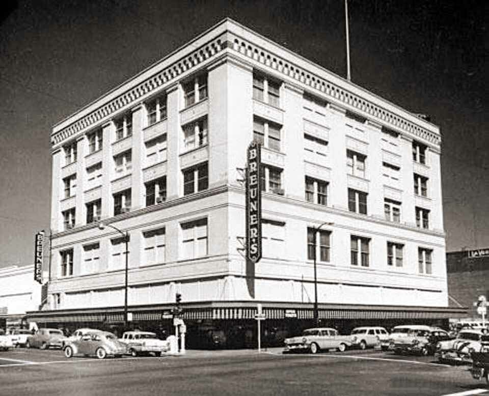 606 E. Main St. - The Toy House (1957) 608-616 E. Main St. - Breuner's Appliance (1958) 601-611 E. Main St. Former Breuners when they were downtown - This was the former Stockton Dry goods building right in the heart of Stockton during the 1930s - By 1945 through at least 1960, John Bruener Co., a furniture store, occupied the building