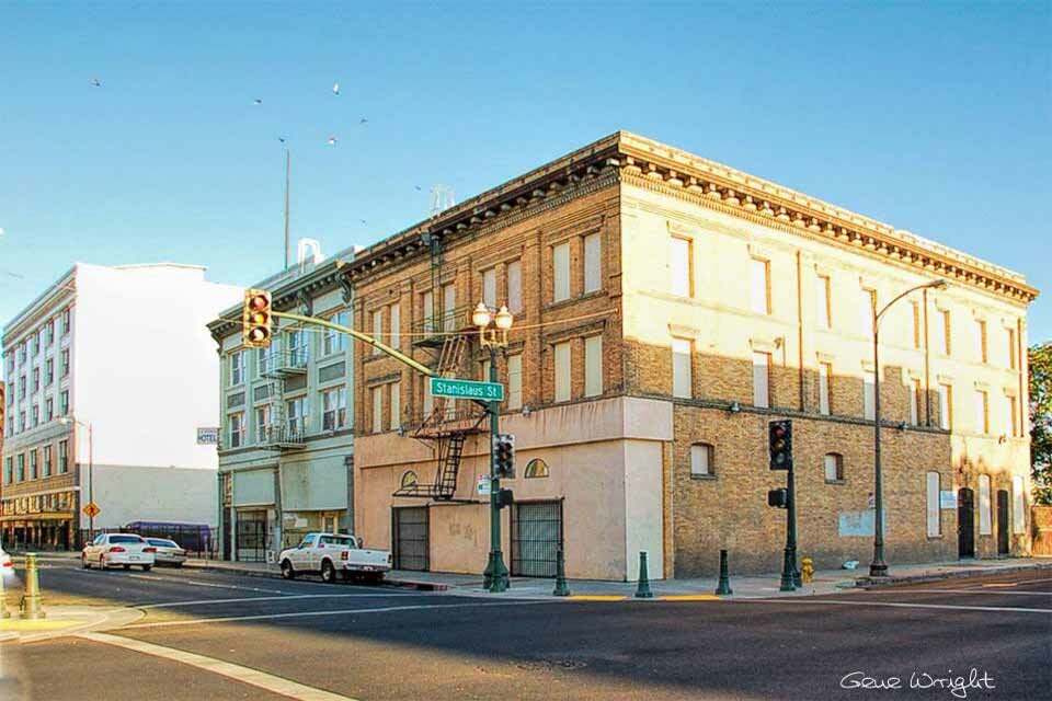 643 E. Main St. - Six Forty Three Club 645 E. Main St. - Stanislaus Apartments - The building also has a 9-11 N. Stanislaus Street address. The 1917 City Directory listed the Stanislaus address as the Lester Apartments. By 1930 the name had changed to the Dudley Apartments, and Gnekows Plumbing and Electric occupied a space on the Main. Street side.By 1935, the plumber had relocated, and F. G. Cowan's restaurant had opened in the building. By 1940, the apartments were listed as Mrs. M. V, Mitchell's furnished rooms, and Marengo Liquors replaced the restaurant. By 1945 and through at/east 1950, the building was known as the Alta Apartments, and Fred Oat Porto's restaurant was located on the Main Street Side. The building is now known as the Stanislaus Apartments.645 E. Main St. - Solari's Tavern (67) / Valhalla Tavern (1960) / Fred Dal Porto Restaurant (1950)