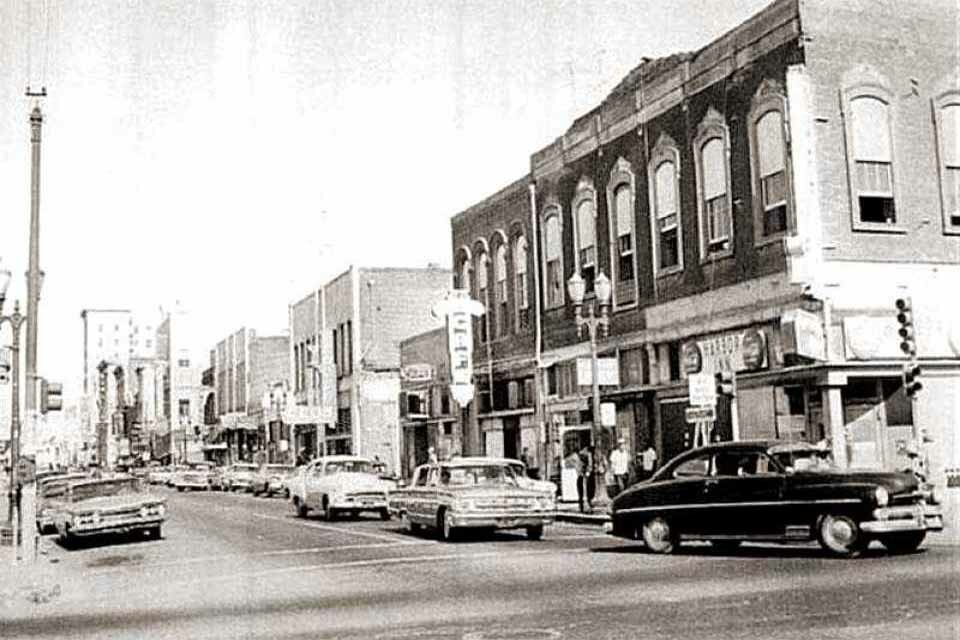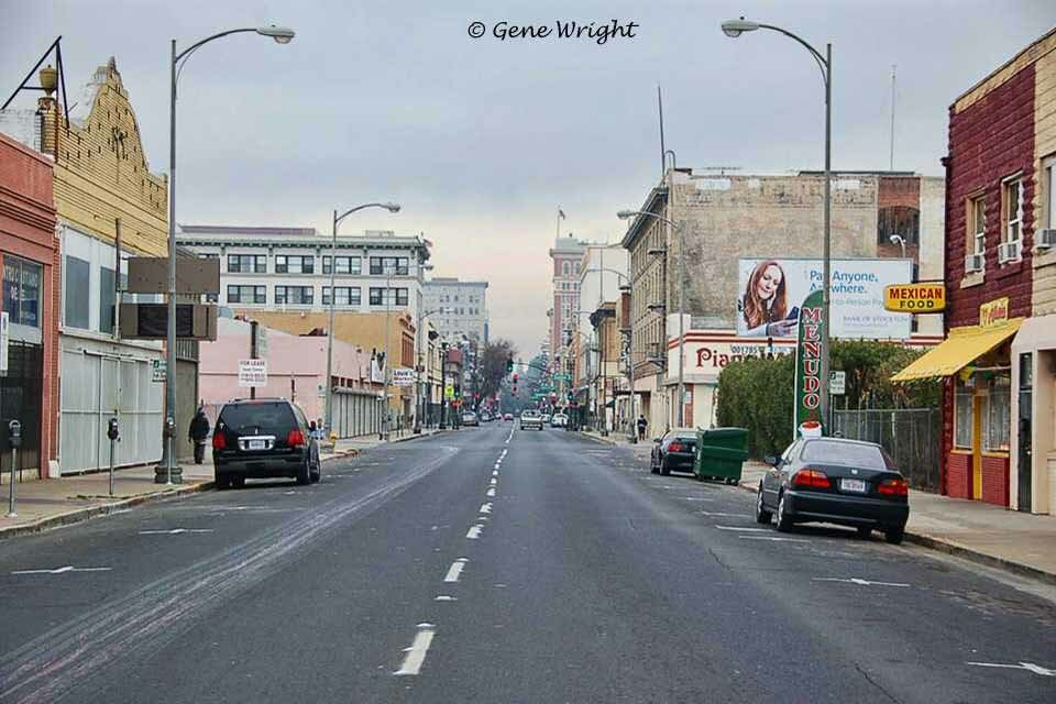 500 Block of East Main looking east after being PhotoShopped from a dark blob. I thought it was rather artistic considering the photo began with shooting direct into the sun and came from the camera nearly black